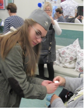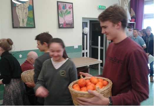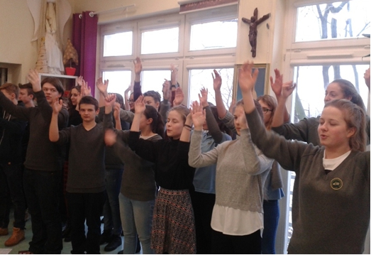 M³odzie¿ ze Szkolnego Ko³a Caritas Gimnazjum Katolickiego w Tczewie z P. Ma³gorzat± Krzemiñsk±