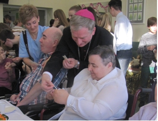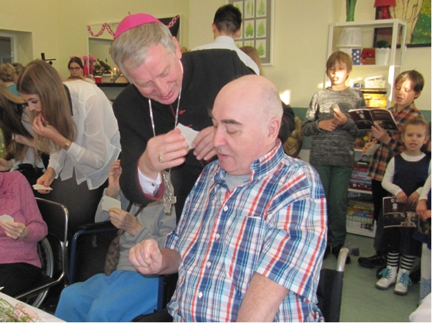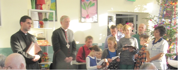 W dniu Wigilii, personel szpitala, rodziny Pacjentów i wolontariusze do³o¿yli wszelkich starañ, aby by³ to wyj±tkowy czas Bo¿ego Narodzenia ³±cz±cy wspomnienie i obraz domu rodzinnego z przyjêtymi tradycjami. Od¶wiêtnie ubrani Pacjenci, dekoracja sto³u, op³atek na sianku i Biblia na honorowym miejscu, melodie kolêd, ¶wiate³ka na choince, ¿³obek z Rodzin± ¦wiêt±, to niektóre z akcentów tegorocznej Wigilii. W tê piêkn± uroczysto¶æ zaszczyci³ nas sw± obecno¶ci± JE ks. Biskup Pelpliñski Ryszard Kasyna i kapelan ks. dr S³awomir A³aszewski. Po ods³uchaniu Ewangelii o Narodzeniu Jezusa w Betlejem i wys³uchaniu s³owa Bo¿ego wyg³oszonego przez Ks. Biskupa odmówili¶my wspóln± modlitwê i podzielili¶my siê op³atkiem. Ka¿de z³o¿one ¿yczenia by³y bardzo indywidualne i p³yn±ce z serca. Do pacjentów przebywaj±cych w ³ó¿kach Ks. Biskup podszed³ osobi¶cie ³ami±c siê op³atkiem i udzielaj±c im b³ogos³awieñstwa. To by³y bardzo wzruszaj±ce prze¿ycia dla wszystkich uczestników Wigilii. Widaæ by³o ³zy wzruszenia oraz u¶miech. Wywo³anie u¶miechu na twarzach Pacjentów przebywaj±cych w okresie ¦wi±t w naszym szpitalu, jest najwiêkszym podziêkowaniem. Chorzy przekonali siê, ¿e nawet ¦wiêta poza domem mog± byæ mile spêdzone, ¿e jest kto¶, kto ich kocha i chce spêdzaæ z nimi ten wyj±tkowy czas.