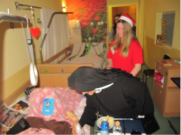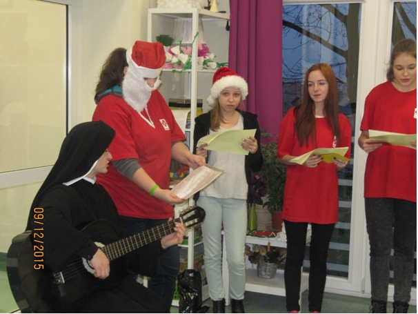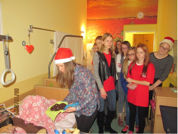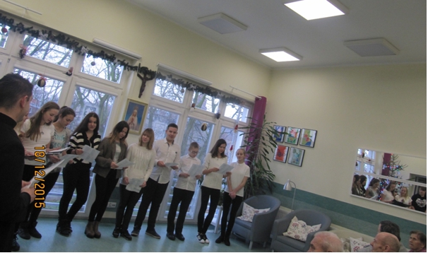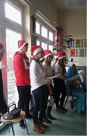 ¦piewanie kolêd to jeden z najstarszych i najpiêkniejszych tradycji w polskim domu. S± bardzo melodyjne, ³atwe i wyj±tkowo piêkne, rodzinne. Warto pielêgnowaæ tê tradycjê, bez wzglêdu na miejsce zamieszkania, pobytu, bo ona wyra¿a nas – Polaków. W okresie ¦wi±t Bo¿ego Narodzenia arty¶ci nie zapominaj± o pacjentach przebywaj±cych w szpitalu. W takich chwilach wa¿ne jest, aby spêdziæ ten czas razem.Podczas spotkañ us³yszeli¶my najpiêkniejsze polskie kolêdy. Pacjenci szybko w³±czyli siê do wspólnego ¶piewu, co wytworzy³o ¶wi±teczny klimat jedno¶ci i rado¶ci. Dzieci, m³odzie¿ i inni wykonawcy sw± energi± i ¿ywio³o¶ci± wprowadzili nas w przed¶wi±teczny klimat ¦wi±t Bo¿ego Narodzenia. Zas³u¿enie otrzymali podziêkowania i brawa od Pacjentów. Absolwenci i m³odzie¿ z Gimnazjum nr 1 w Tczewie dzia³aj±ce przy Caritas z s. Dorot±, prze³o¿on± Sióstr Pasterek przy Parafii Podwy¿szenia Krzy¿a ¦w. w Tczewie.